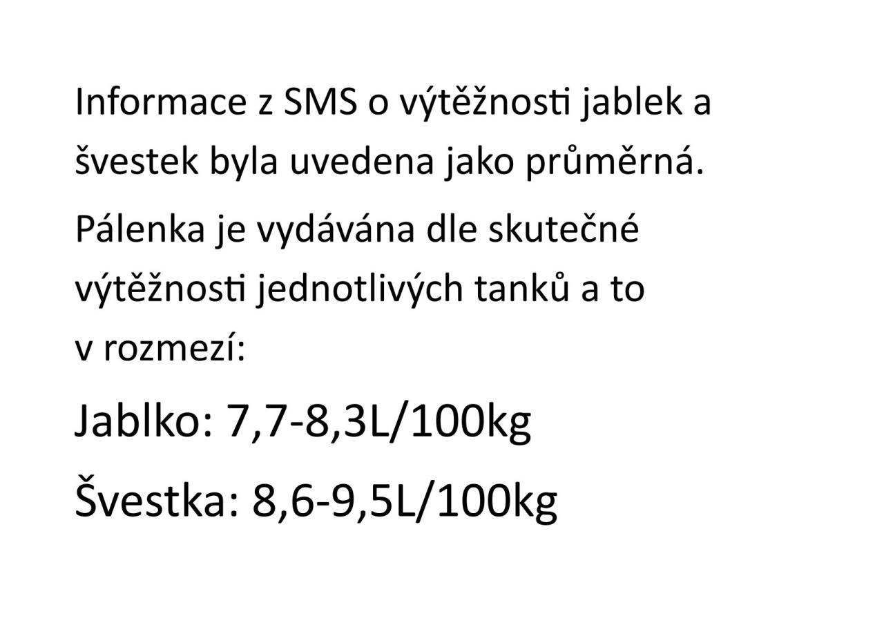 Informace o výtěžnosti