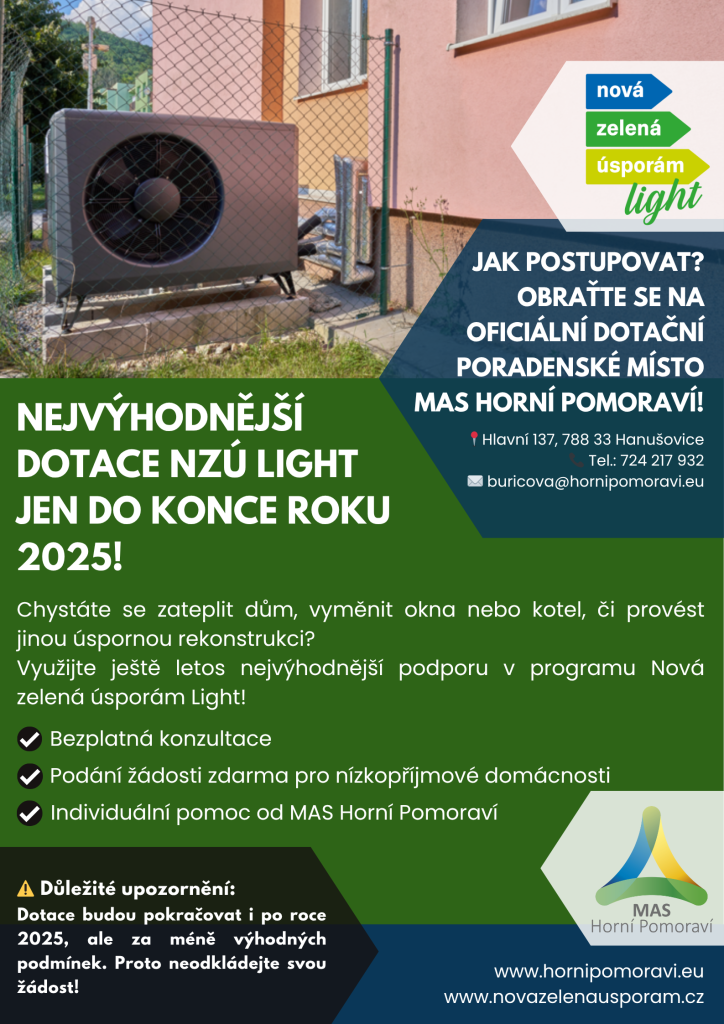 Informace o aktuálně nejvýhodnějších podmínkách programu Nová zelená úsporám Light, které jsou dostupné pouze do konce roku 2025.